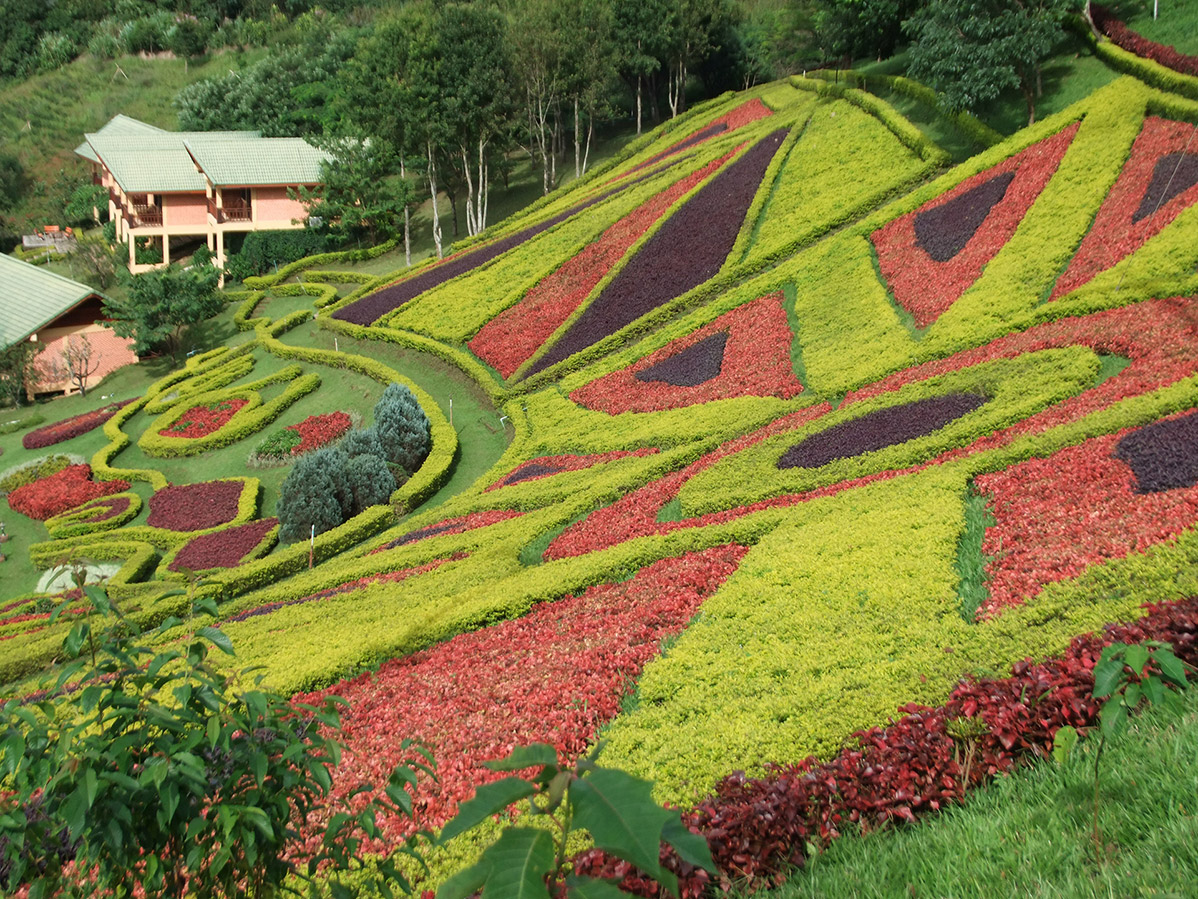 Mae Fah Luang Gardens and Palace, also known as the ‘Switzerland of Thailand’, located amidst lush tropical forests near the top of the beautiful Doi Tung mountain range.